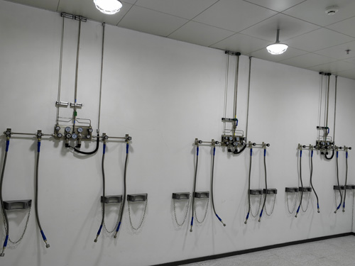 7.氣瓶間內存儲的氣瓶運用帶防倒鏈的氣瓶安裝吊架統一,氣瓶安裝吊架堅硬質量好、美觀性得體。氣瓶安裝吊架運用鋁和金設計而成。